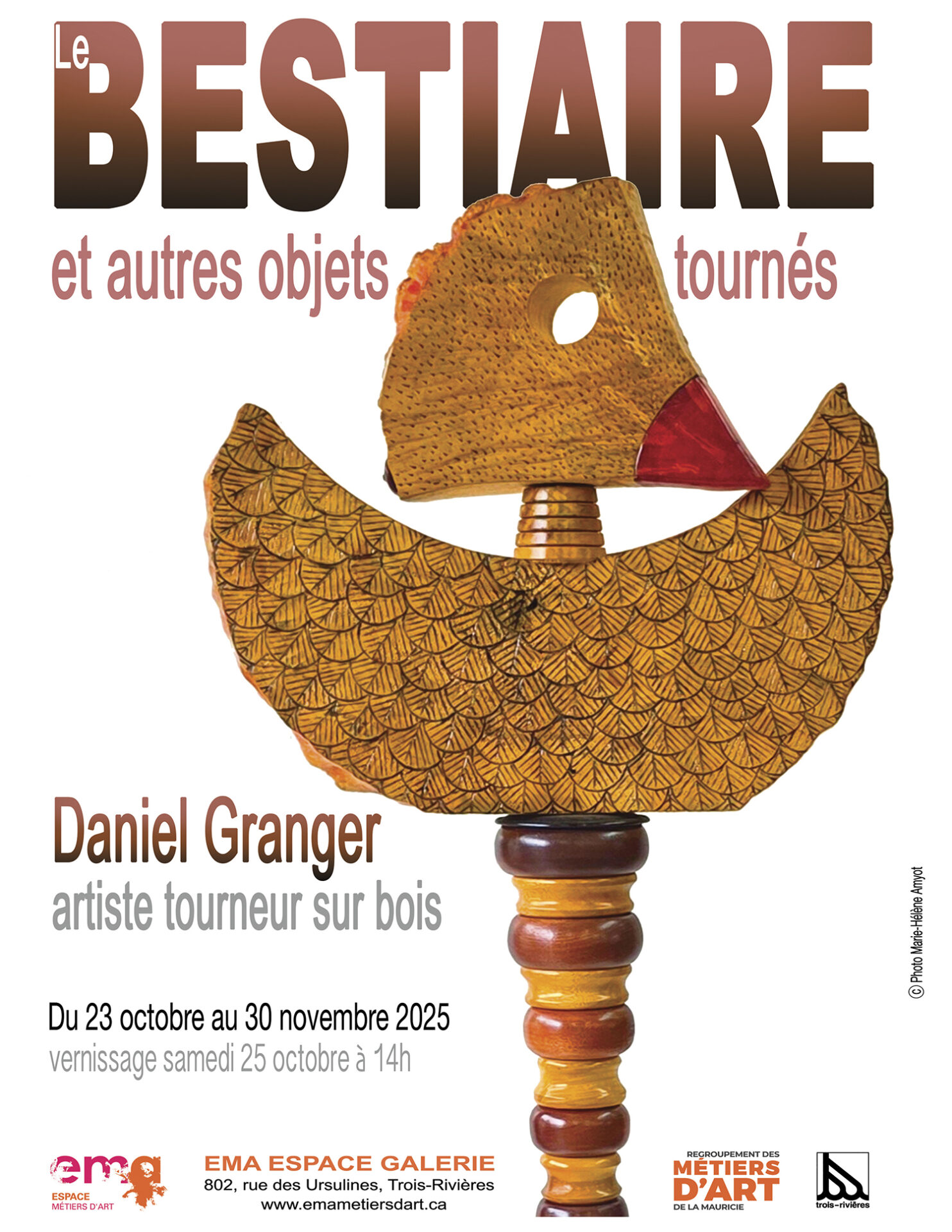 Natif de St-Jean-sur le Richelieu, Daniel Granger est membre du Regroupement des métiers d’art de la Mauricie et on a pu découvrir le fruit de son travail lors de la première édition de Métier d’art en Fêtes en 2023. Il se définit lui-même comme un mélange d’artiste-tourneur et artiste-sculpteur. Il participe à différentes expositions au Québec depuis 1977.